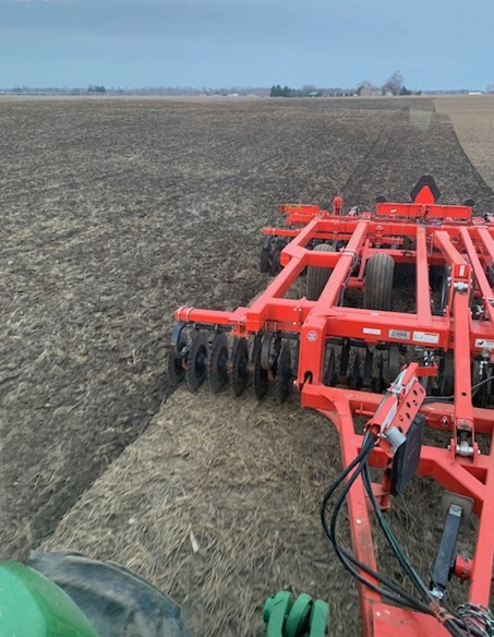 The tractor thrums quietly along the furrows. FM stereo in the cab. Fred keeps the doors closed; the wind is still cold. Nimbly, the machine skims over the field to the far side where there is still water. Pausing there, he puts the tractor into neutral, and steps outside. His rubber boots suck into the mud. Yeah sure Jane, I best not get stuck here. Getting back in, he takes a sip of his coffee and settles back into the cab to continue. Deftly, he turns the big beast around and sends it buzzing along like a bee on a blossom. Then back again. Through the windshield, he sees the long white contrail of a plane. Perhaps heading for Europe.