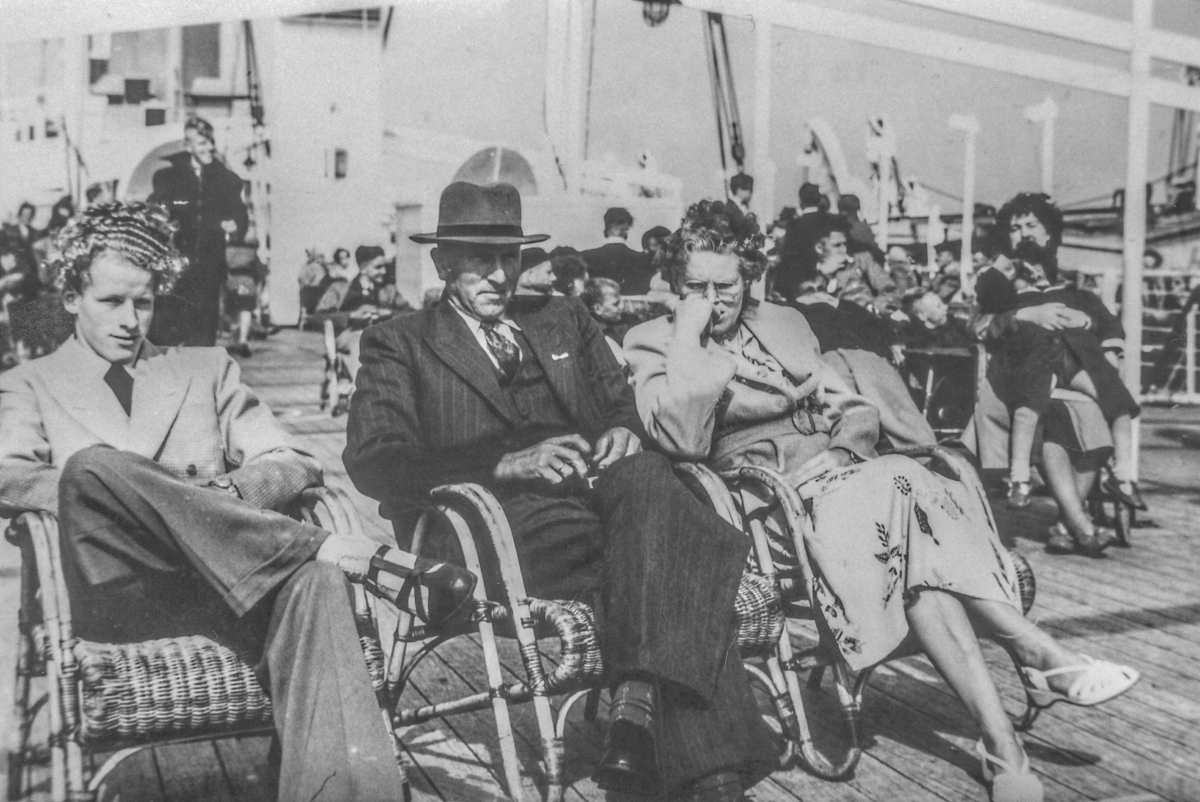 This week on the boat was a perfect transition to the new world, much better than a six-hour flight. Mom and Dad had an extremely busy, stressful half year behind them with awfully hectic final weeks. Now there was nothing they must, indeed could do. Every meal was served in a spacious dining room where we had assigned seats. There were no chores, nothing to clean or repair, no shopping, no visits, no haggling over selling this item or that animal, only walks on deck, talks in the lounge, long siestas and leisurely dinners. What a change for our parents, stress to be blown away by Atlantic wind.